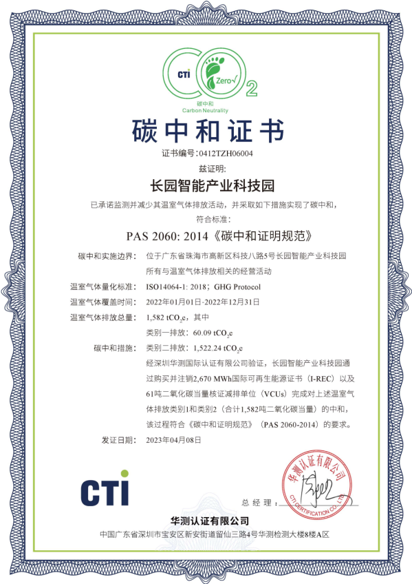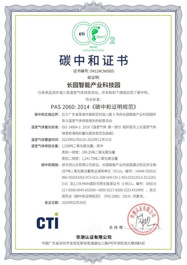 近日,南宫ng28科技集团位于珠海高新区的“南宫ng28智能产业科技园”完成了2023年度运营层面的碳中和认证工作,这一重要成就标志着该园区已连续两年实现碳中和目标。